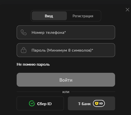 | Вход по номеру телефона | SMS-код на номер, привязанный к аккаунту |